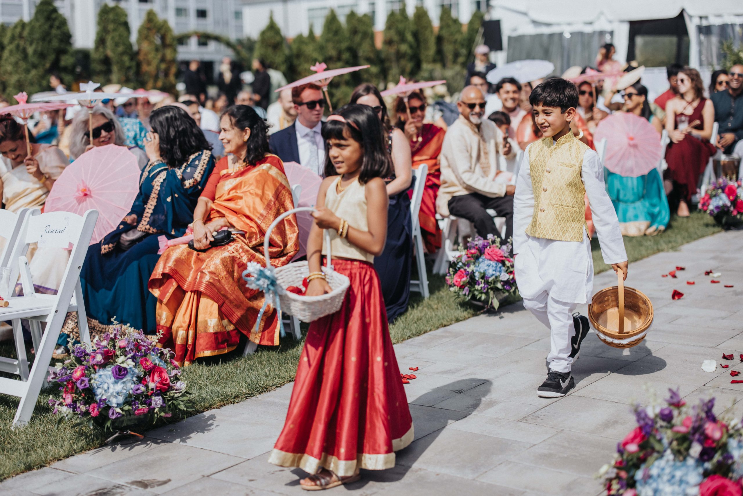 Rice noodles, peanut sauce and bean sprouts served in mini bowls